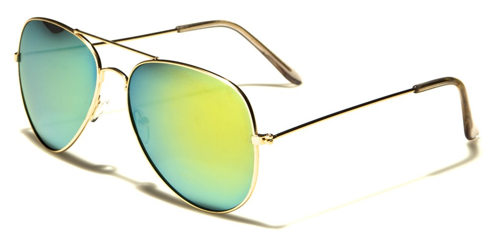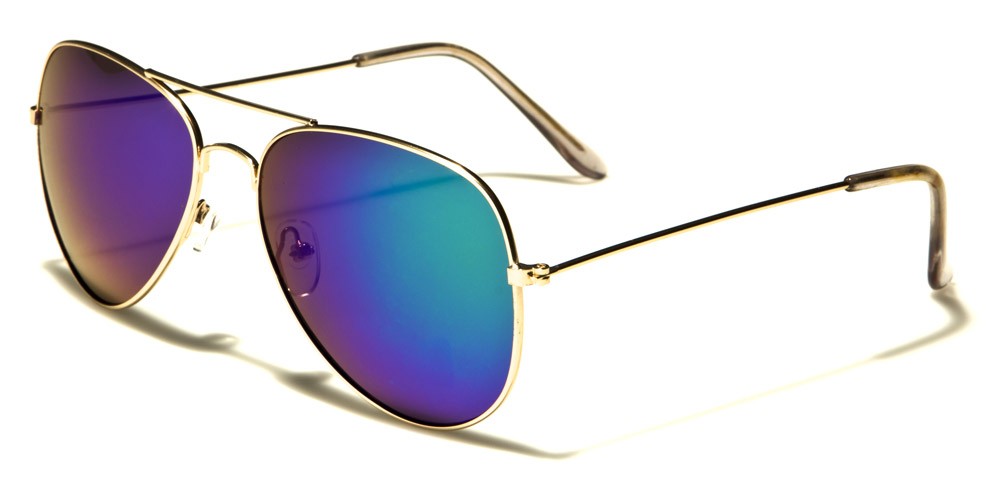 "Top Gun" meets the '70s? These fun aviator-style sunglasses are the perfect look for both men and women. With a variety of vibrant lens colors to choose from, these shades accent your every look. Complete with gold metallic frames, these aviators will be sure to make a modern statement on a classic look. Playful as they may be, these glasses are also practical with UV400 protection.