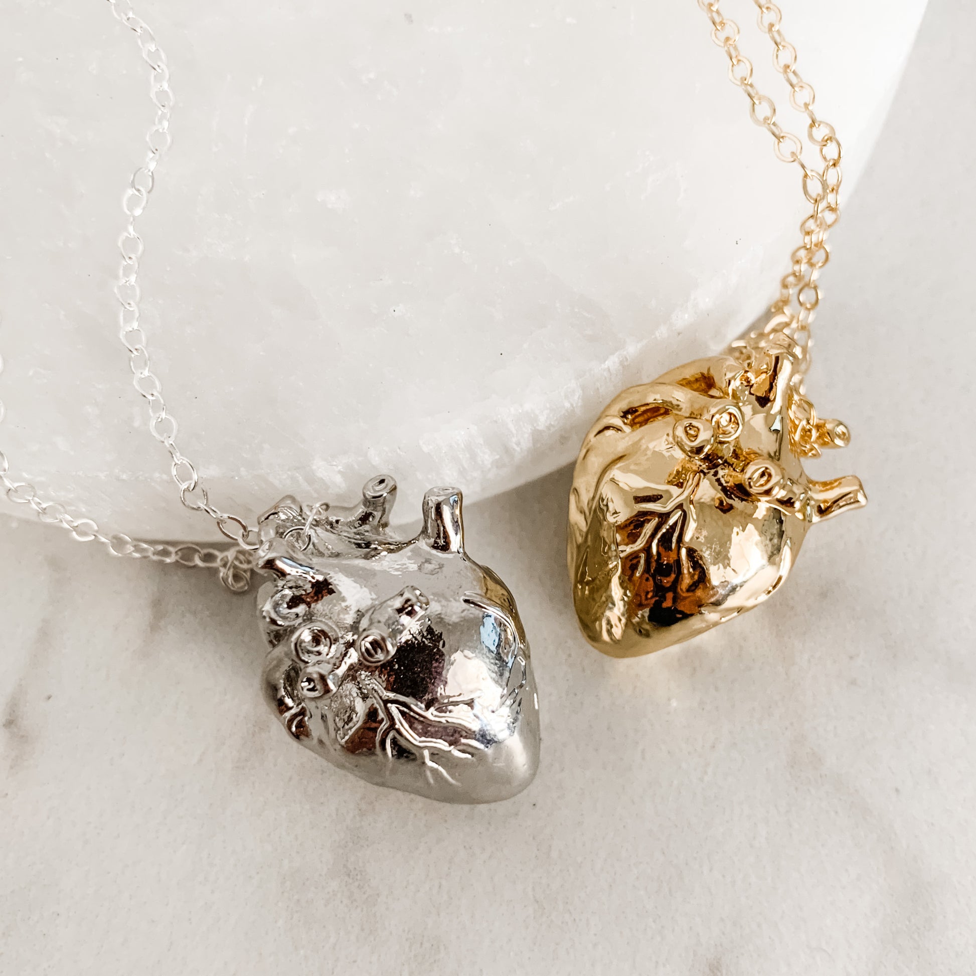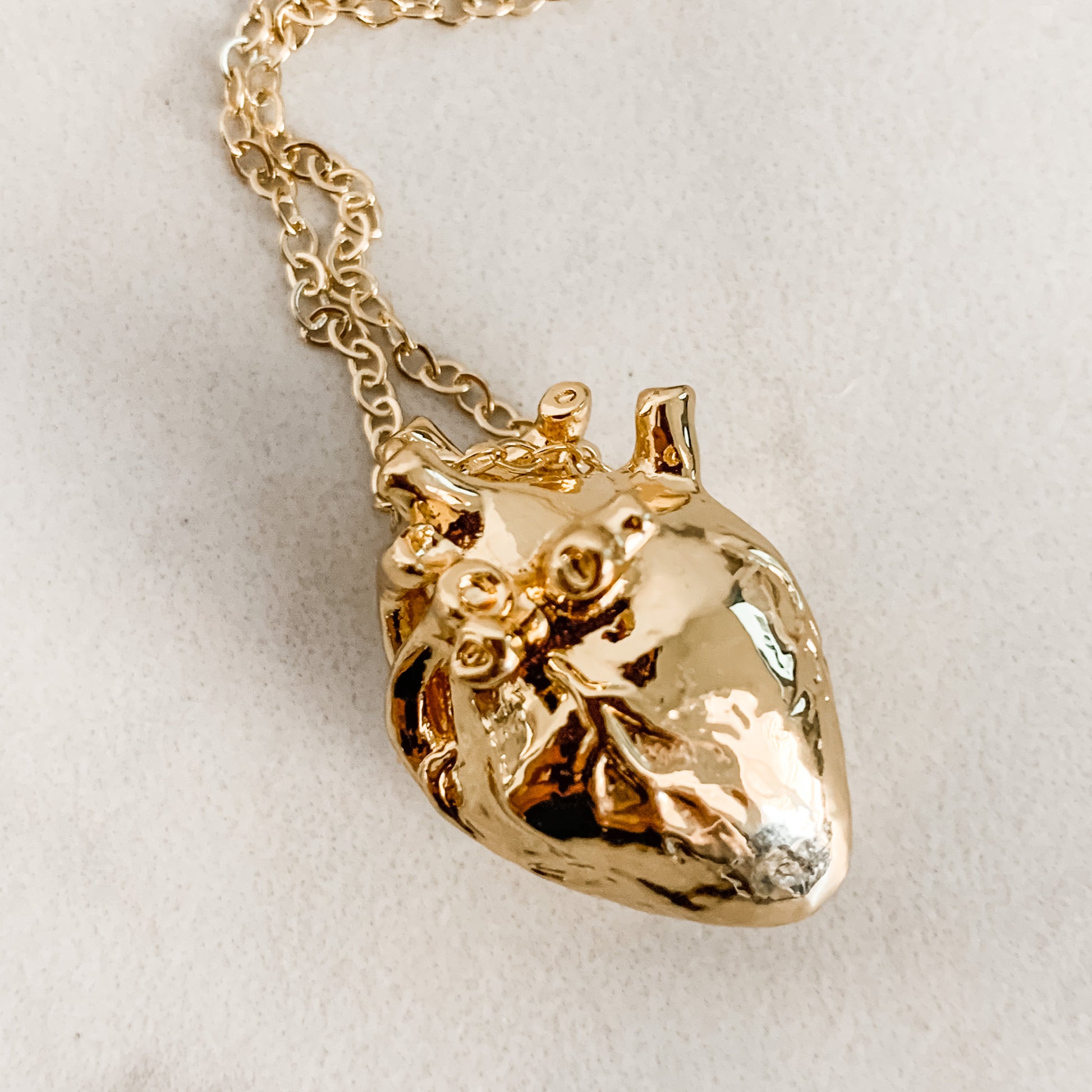 18K Gold Plated Anatomical human heart Pendant on Gold Plated Chain.